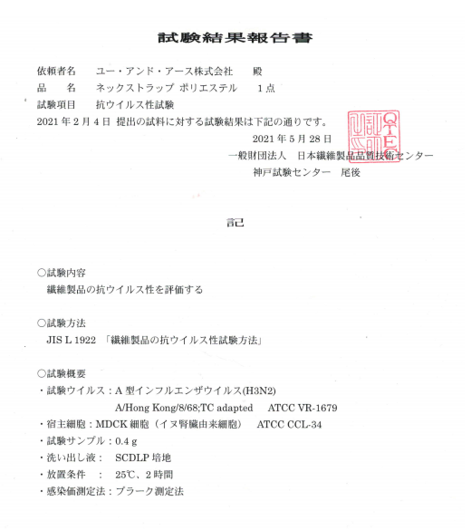 บริการเสริมคุณสมบัติป้องกันไวรัส เป็นบริการใหม่ที่เสริมคุณสมบัติให้สายคล้องคอสามารถป้องกันและลดการเกิดไวรัส สายที่สั่งซื้อพร้อมบริการนี้จะถูกชุบด้วยน้ำยาชนิดพิเศษ ซึ่งจะมีคุณสมบัติในการทำให้ตัวผ้าและส่วนประกอบสายป้องกันการเกิดไวรัสได้ ช่วยให้ใช้งานสายได้อย่างปลอดภัยและมั่นใจมากยิ่งขึ้น